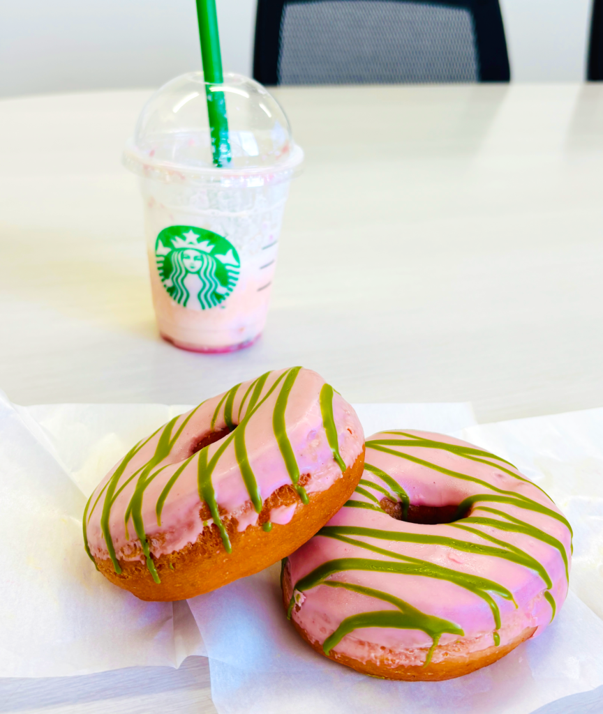 桜抹茶ドーナツ&桜咲くよ白桃フラペチーノ