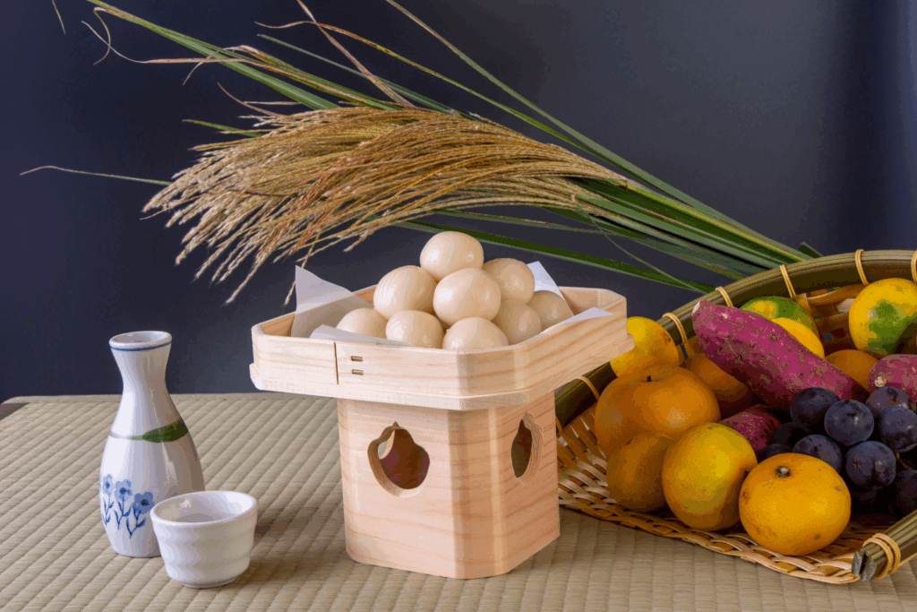 そののち、庶民に広がると秋の収穫物を供えて実りに感謝する行事へと変化。