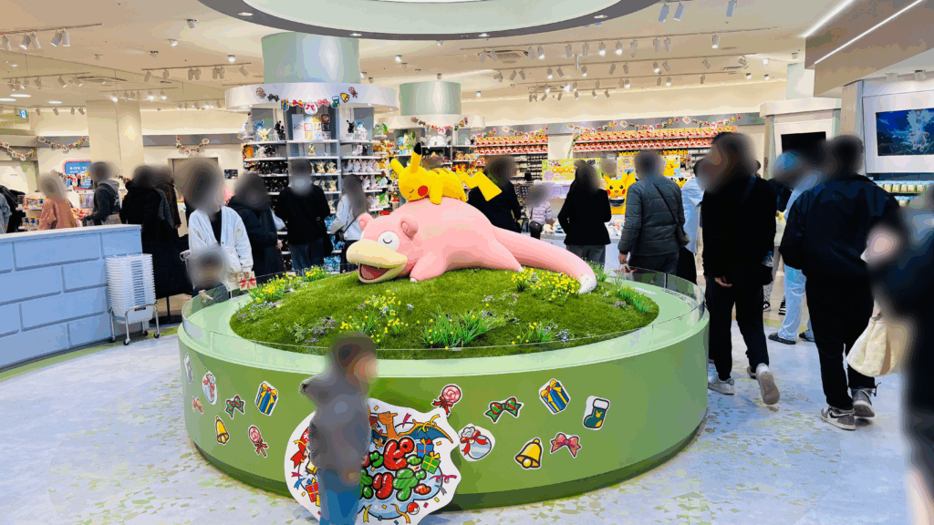 店内に入ると広いスペースがあり、ヤドン&ピカチューが迎えてくれます。