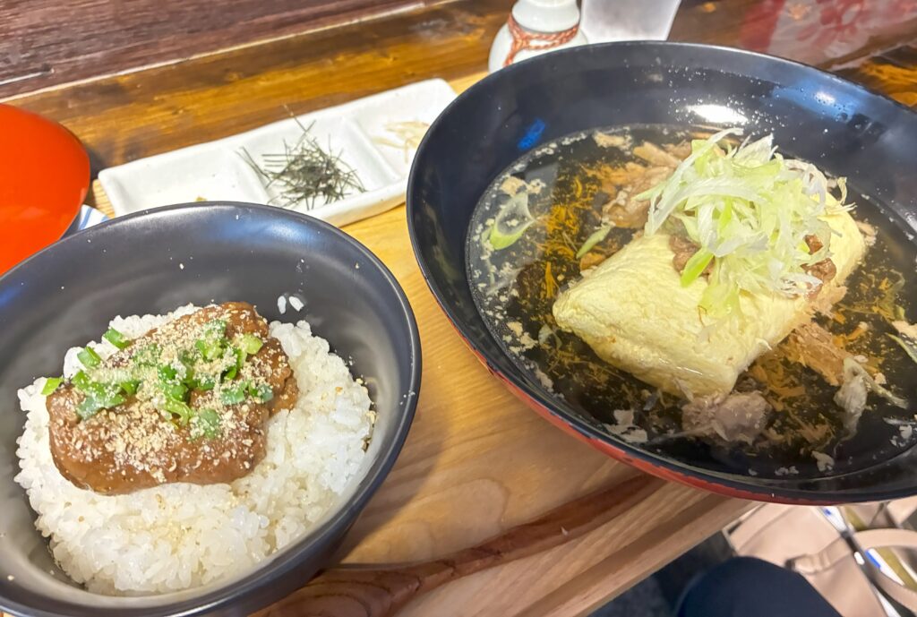【みみずく定食】~牛スジだし巻きと肉味噌ご飯~